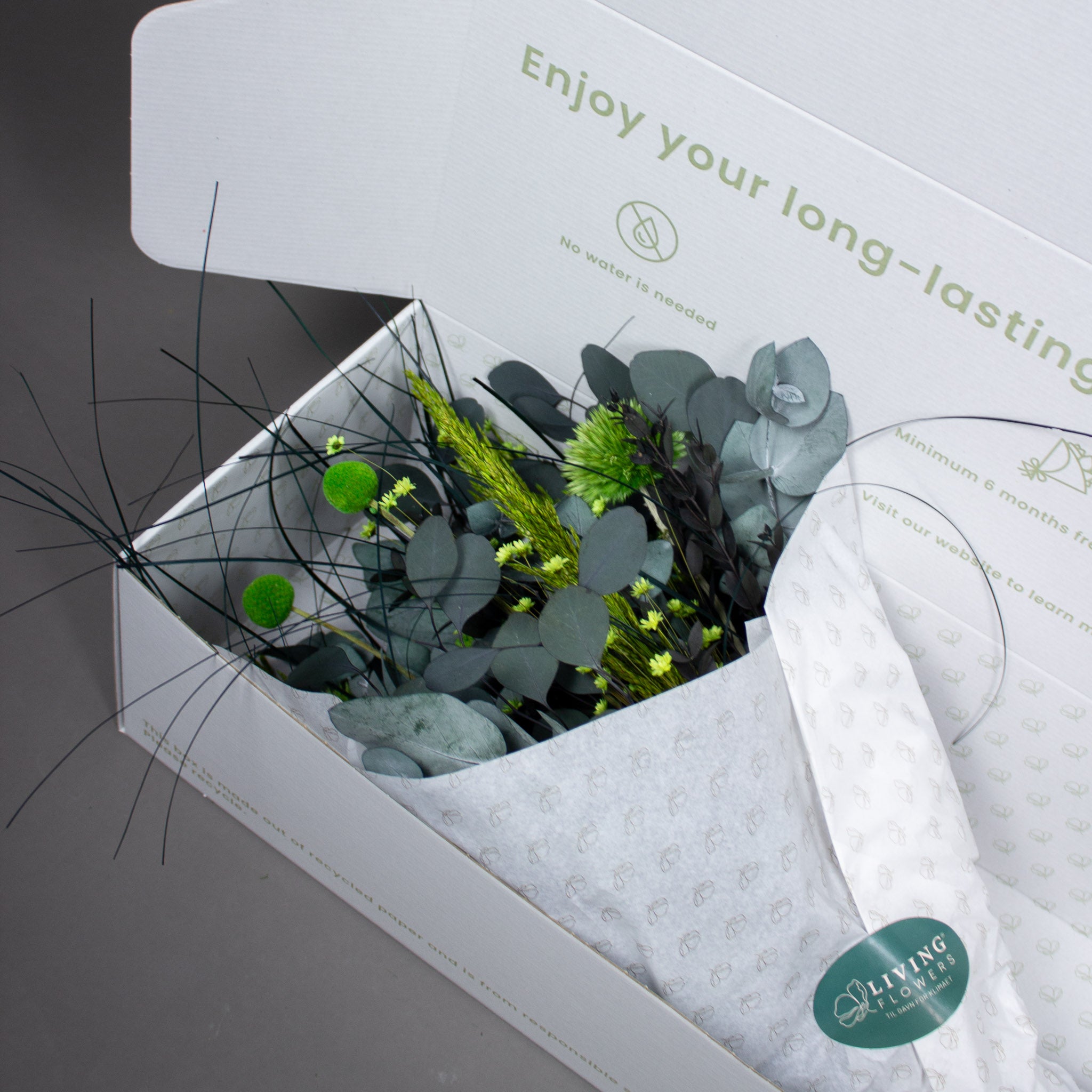 Anstelle eines frischen Blumenstraußes, der schnell verwelkt, bieten wir bei Living Flowers lang haltbare Valentinssträuße, die monatelang Freude bereiten – ganz ohne Wasser oder extra Pflege.