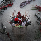 Schaffe eine gemütliche und stimmungsvolle Weihnachtszeit mit der langlebigen Dekoration Weihnachtsglanz. Diese elegante Weihnachtsdekoration vereint tiefdunkle Rottöne, dunkle Grün- und Grauschattierungen sowie natürlich braune Tannenzapfen – eine harmonische Kombination, die ein ruhiges, klassisches und stilvolles Weihnachtsambiente bildet. Perfekt für winterliche Gemütlichkeit, nordisches Weihnachtsdesign und als dekoratives Element im Zuhause oder Büro.
